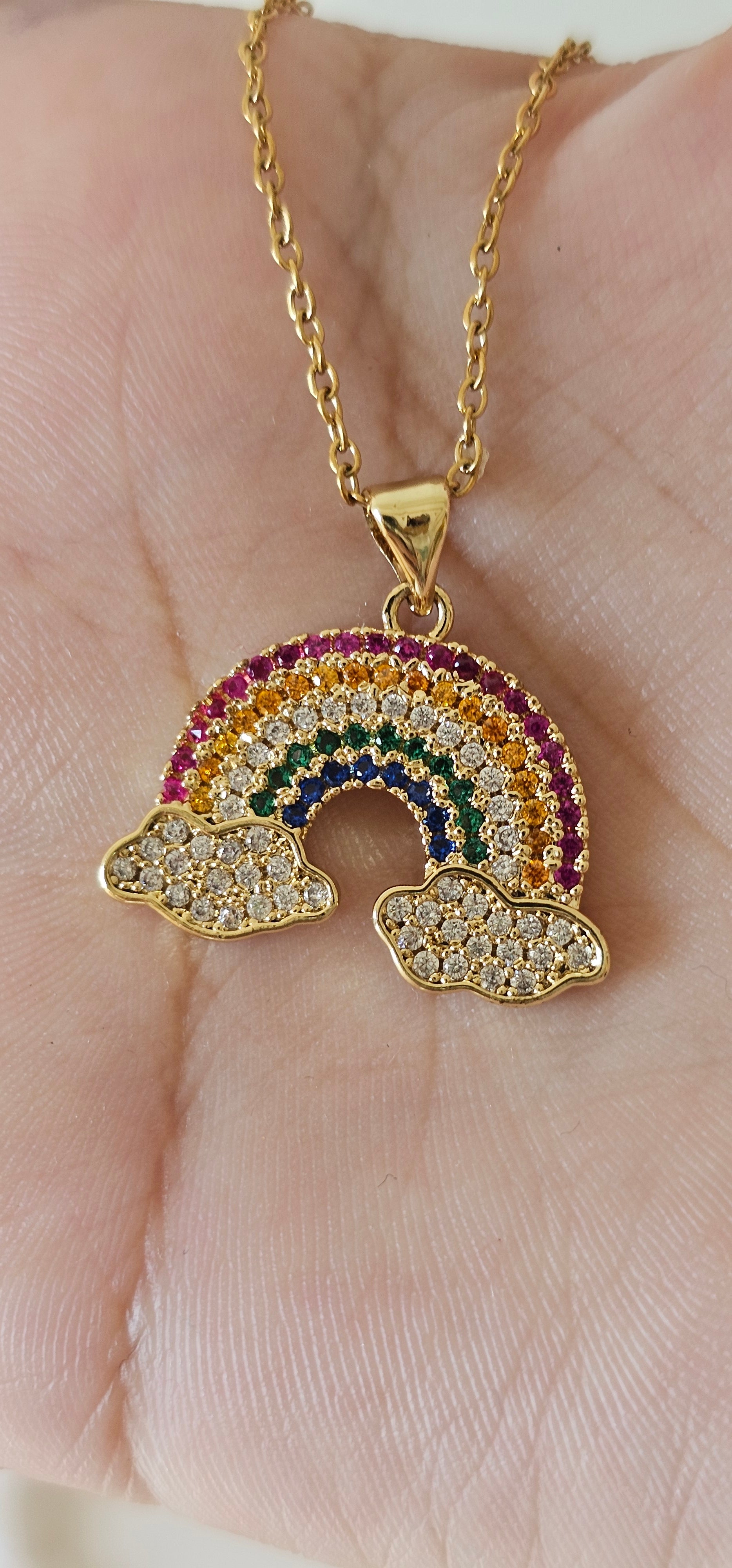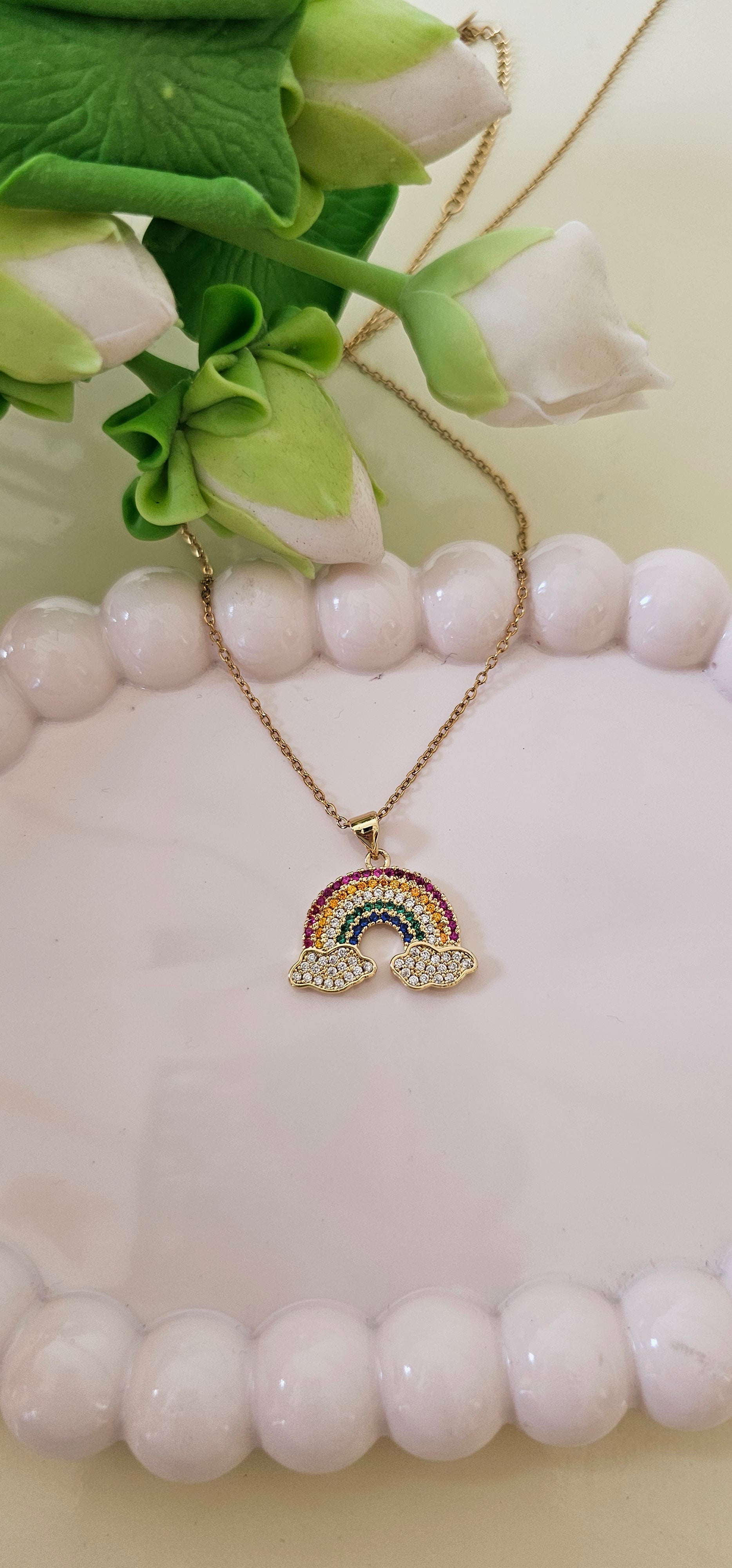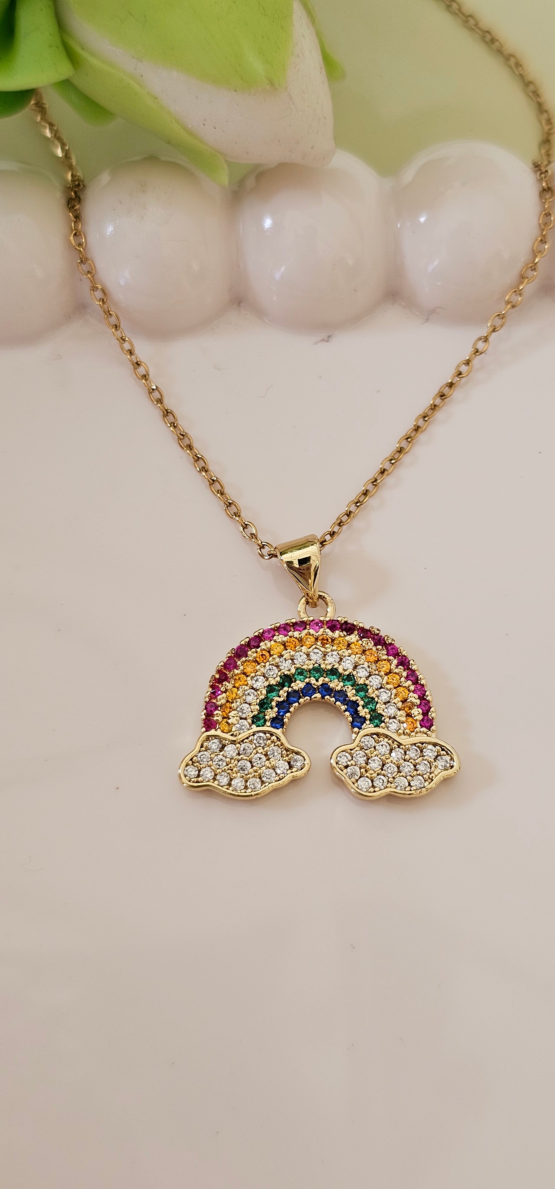 Elevate your style with this sophisticated rainbow necklace crafted from durable stainless steel with a golden finish. Its sleek design adds a touch of elegance to any outfit, making it a timeless accessory for both everyday wear and special occasions. The stainless steel ensures lasting shine and resistance to tarnish, combining beauty with practicality.